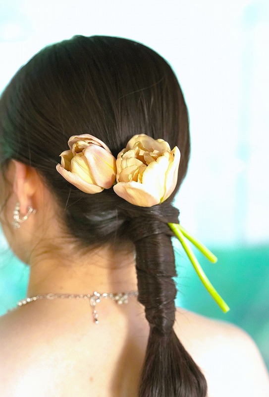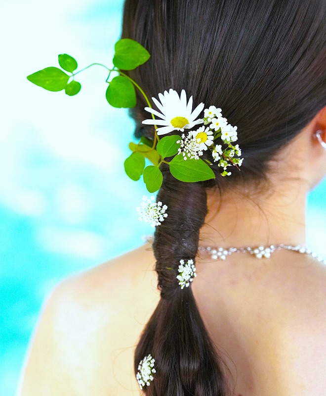会場の装花やヘアアレンジ、ブーケブートニアも