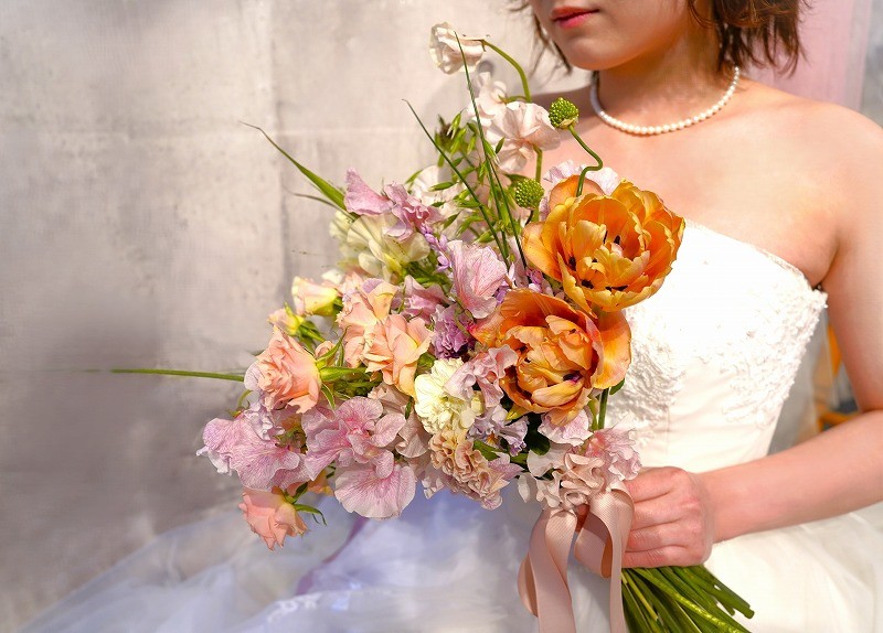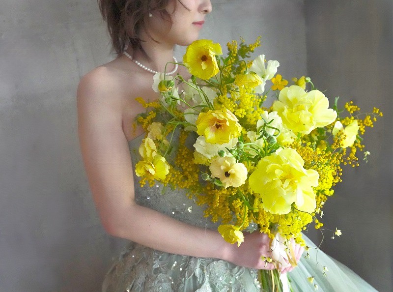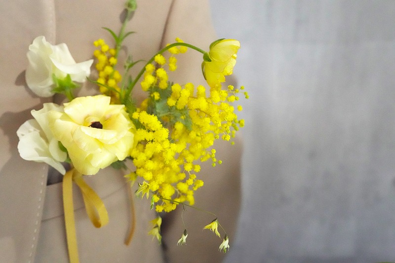 バラやチューリップ、ミモザとスイートピーなど春を感じる色鮮やかなお花に囲まれて