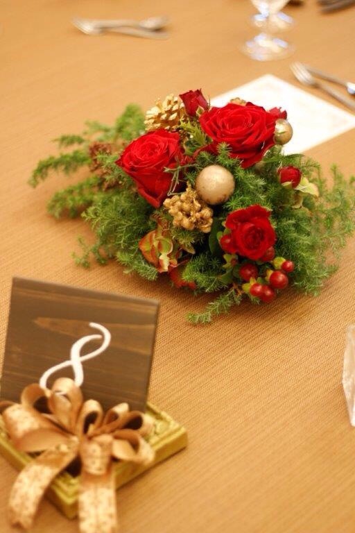 ハイジの村クリスマスディナーショーでの卓上花です。