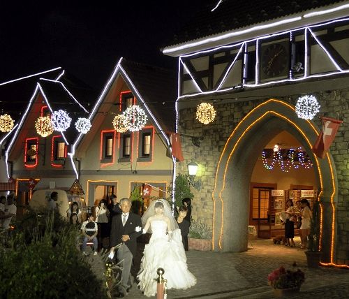 結婚式をしているイメージでハイジの村中庭の「光のチャペル」を