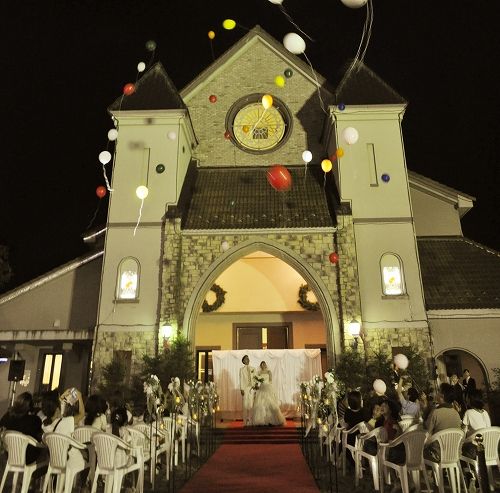 日中とはまた違った雰囲気の中の挙式は素敵でした。