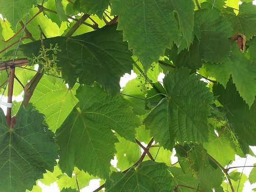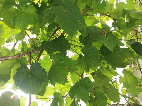 ブドウ棚のブドウも葉が茂り、すくすくと勢いよく育ってきました。