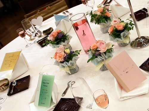 ウェディングケーキの登場や、お色直しの際に新婦お母様の手作りのプリザーブドフラワーでできたブーケを持ってのご入場、そしてお子さまたちにも歌を歌ってもらったりと、とても暖かくアットホームな雰囲気でした。